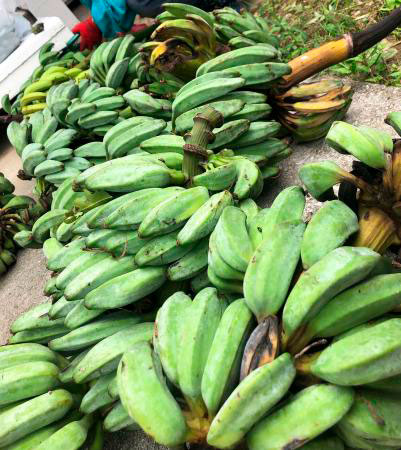 沖縄の友人宅で初めて自分で収穫したバナナたち。ジャングルのようなバナナ畑で巨大なバナナの木をノコギリで切り倒すのが爽快。毎回、スーツケースに山ほど詰めて持ち帰ります。